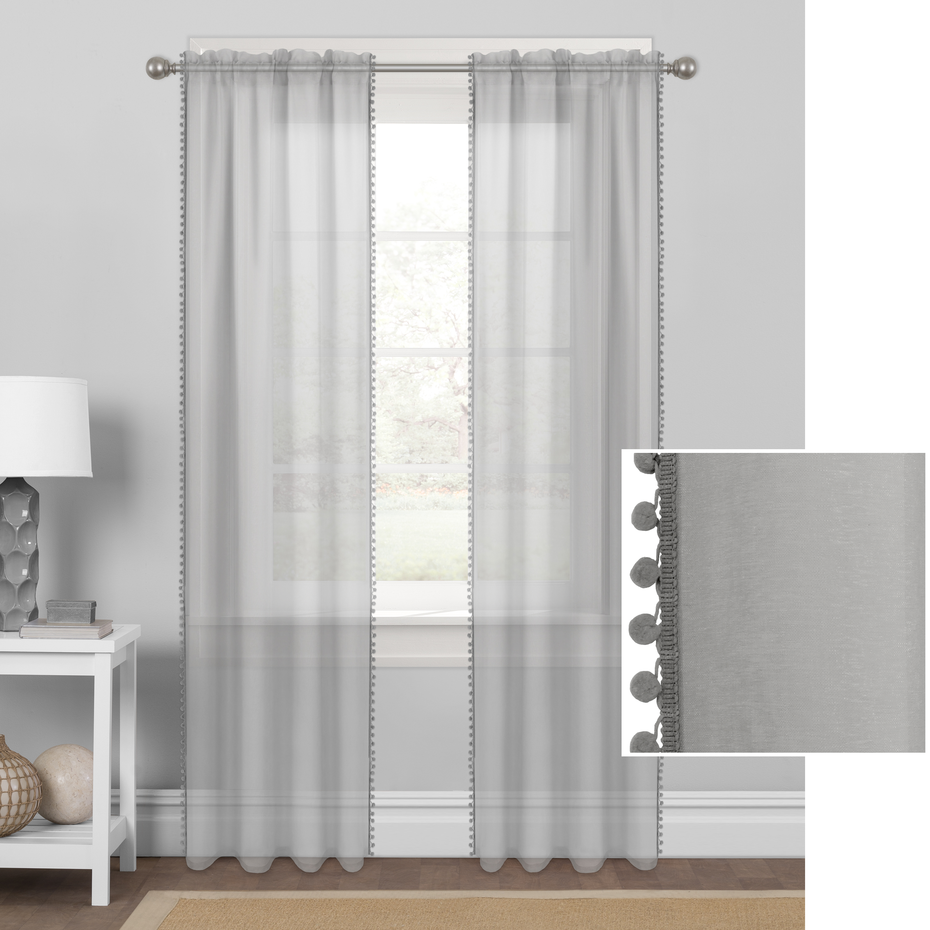 Home Expressions Pom Pom Sheer 2 Pack Sheer Rod Pocket Curtain