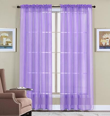 Amazon Com 2 Piece Solid Lavender Purple Sheer Window Curtains