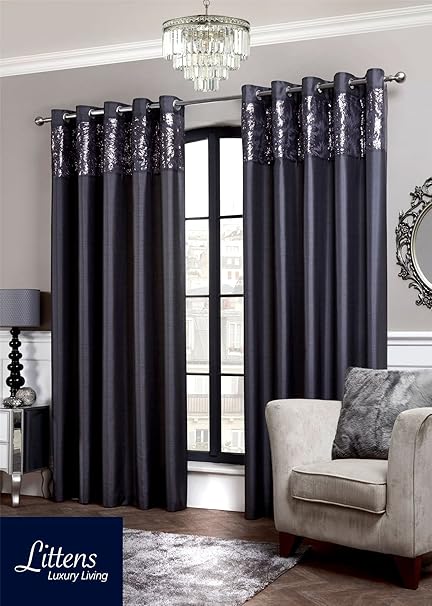 Faux Silk Slate Eyelet Curtains 66x54 168x137cm Amazon Co