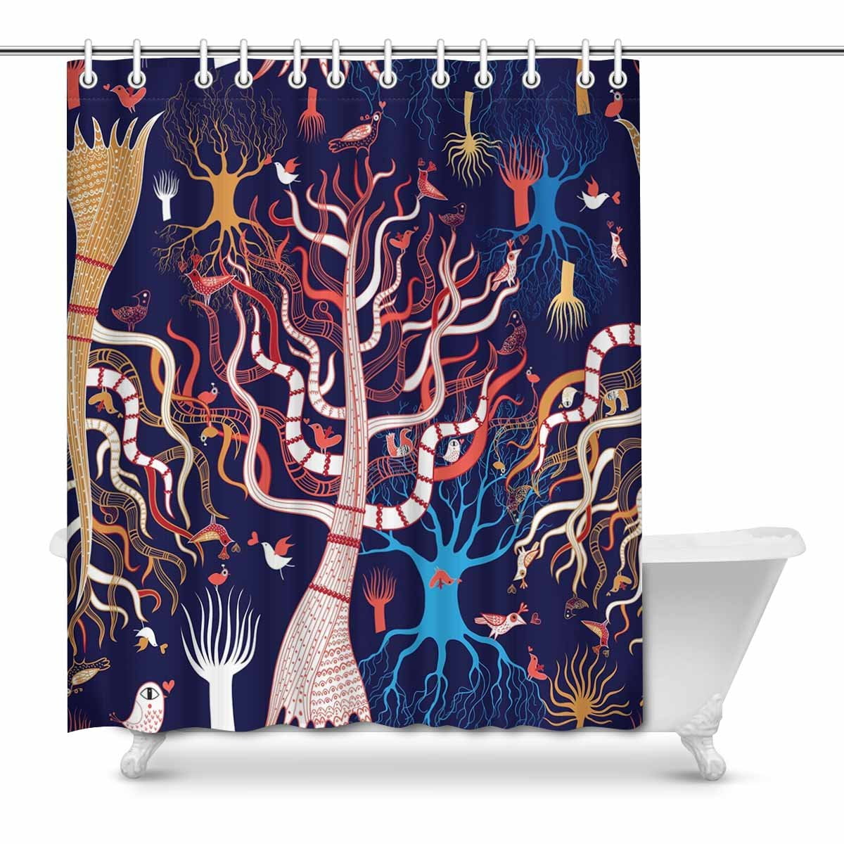 Abstract Tree And Birds Shower Curtain Fabric Colorful Polyester