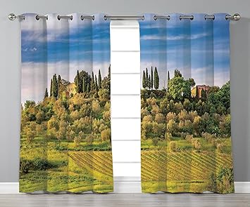 Amazon Com Iprint Stylish Window Curtains Tuscan Green Field