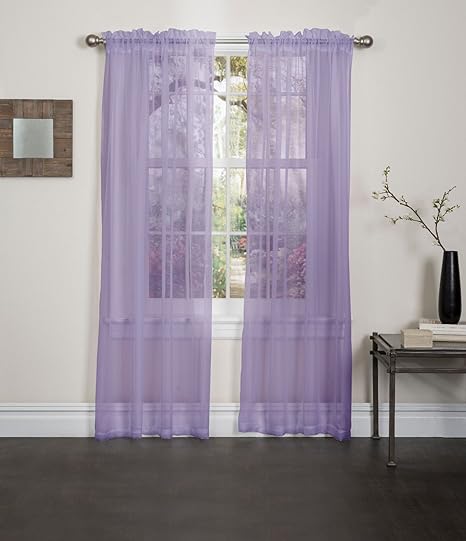Amazon Com 2 Piece Solid Lavender Purple Sheer Window Curtains