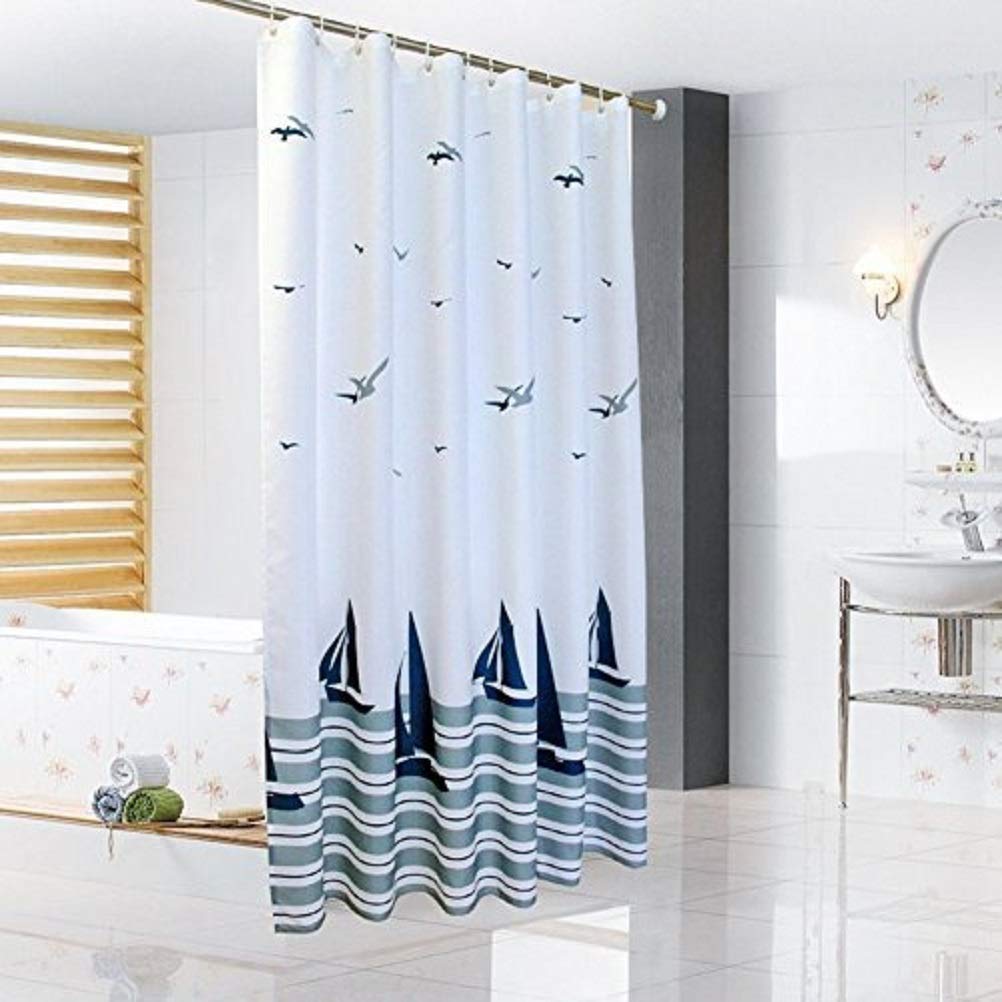 Furnily Seaside Shower Curtain For Wet Room Fabric Shower Curtain