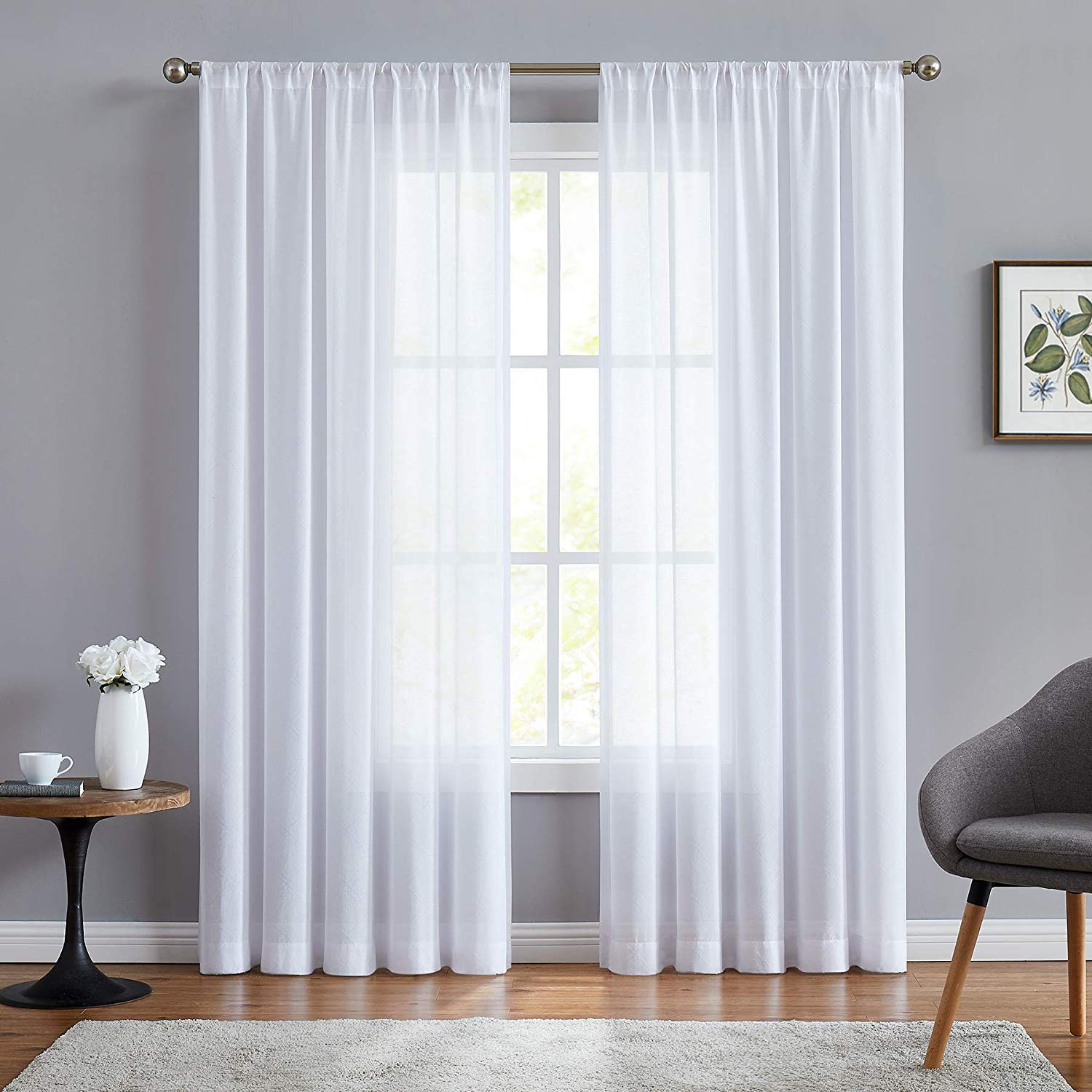 Sheer White Curtains For Living Room 63 Inch Length Bedroom Window