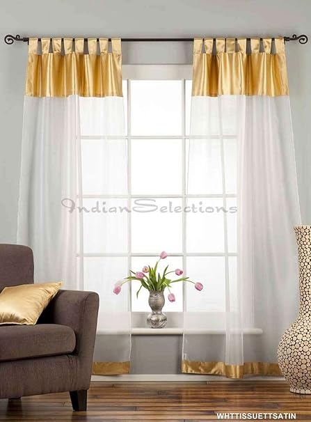 Amazon Com White With Gold Satin Tab Top Sheer Tissue Curtain