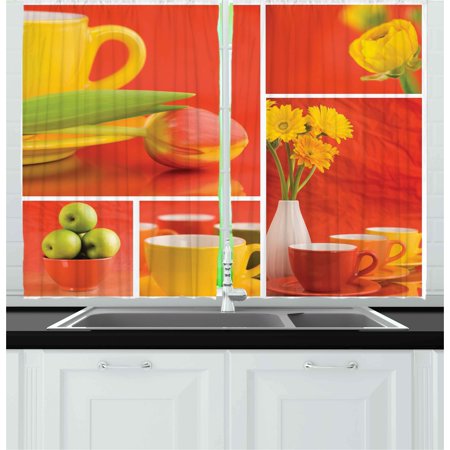 Amazon Com Familytaste Yellow And Red Kitchen Curtains Ottoman